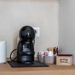 The apartment offers convenient self-catering facilities, including a fully equipped kitchen with an electric kettle, a refrigerator, and kitchenware.
